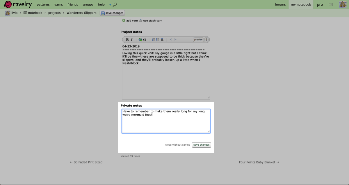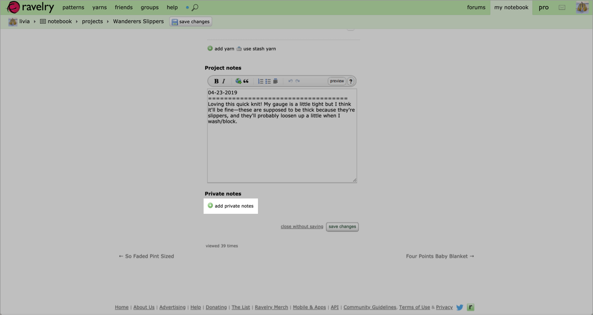 This week, Casey added a feature that had been requested on The List for a very long time: Private Notes!